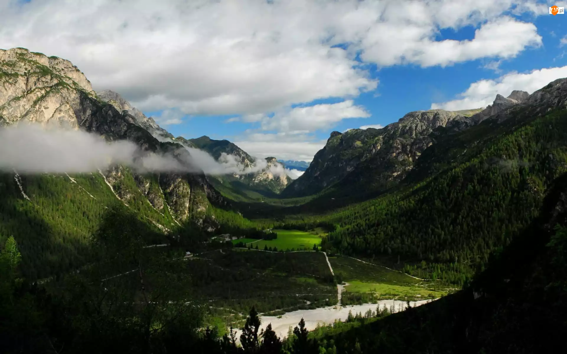 Niebo, Rzeka, Góry, Kanion, Lasy