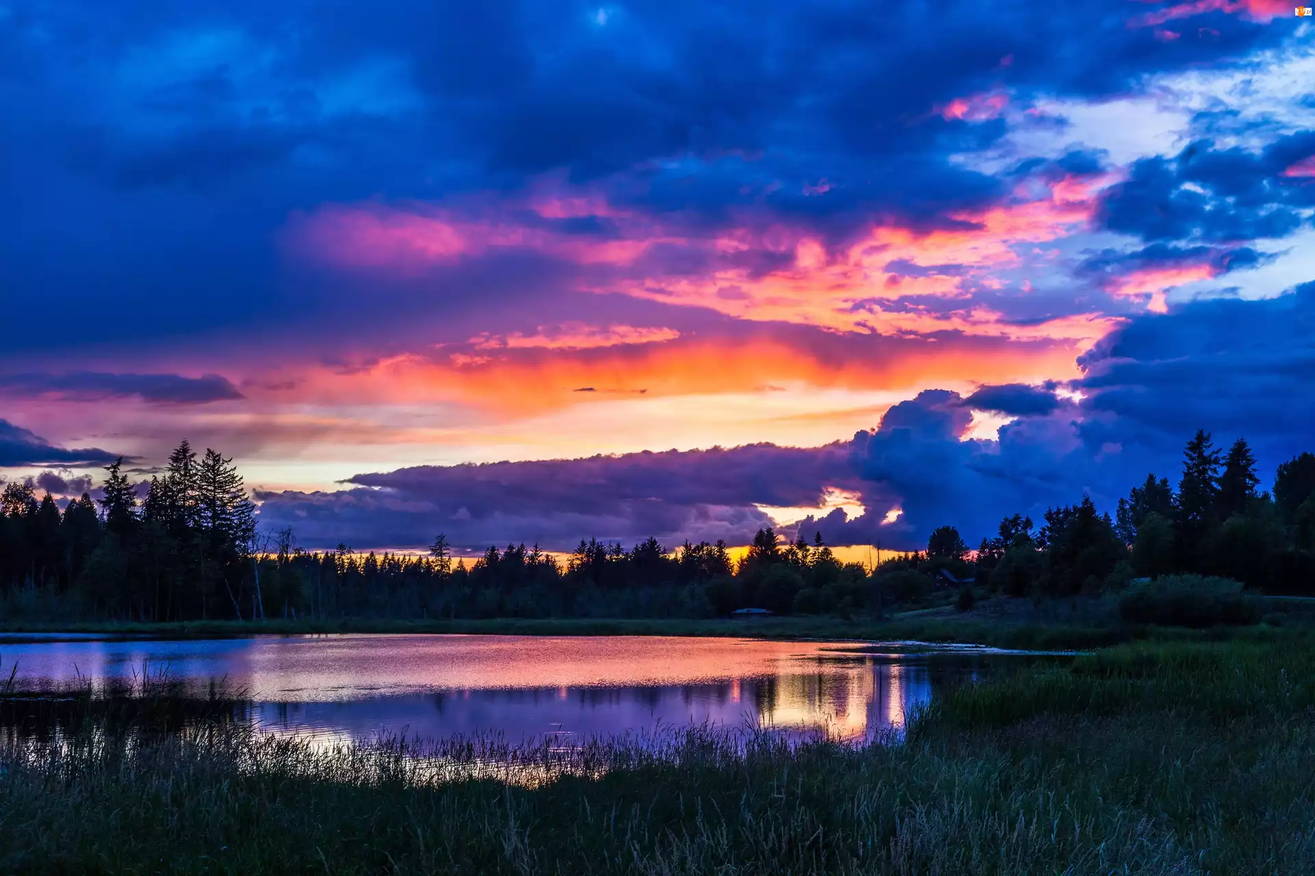 Chmury, Jezioro, Niebo