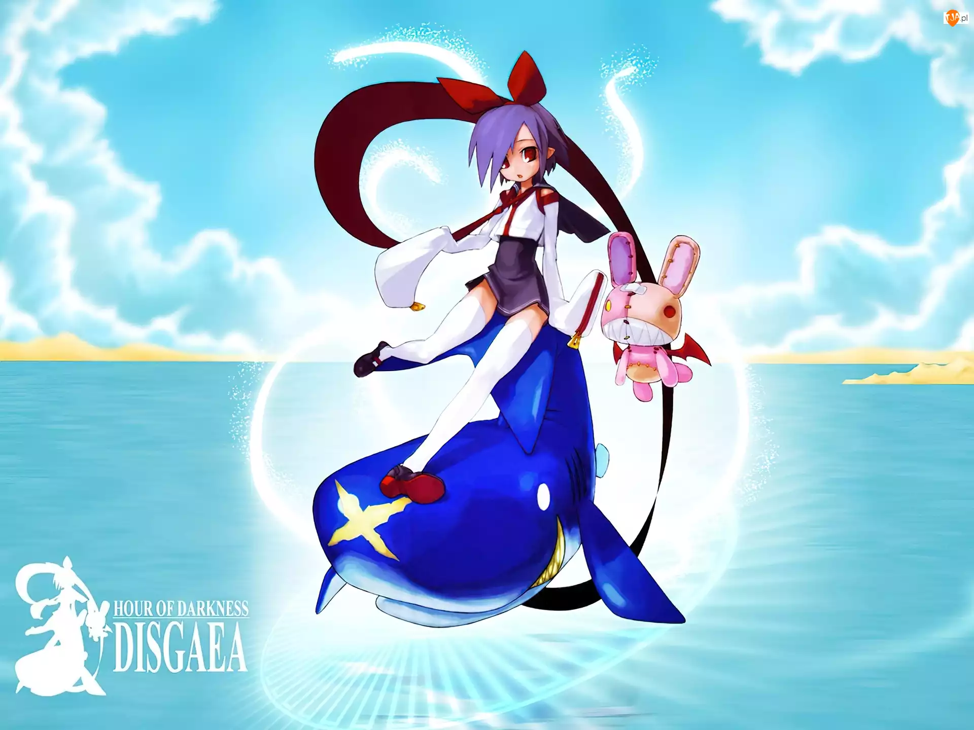 chmury, królik, Disgaea, dziewczyna, morze, wielo
