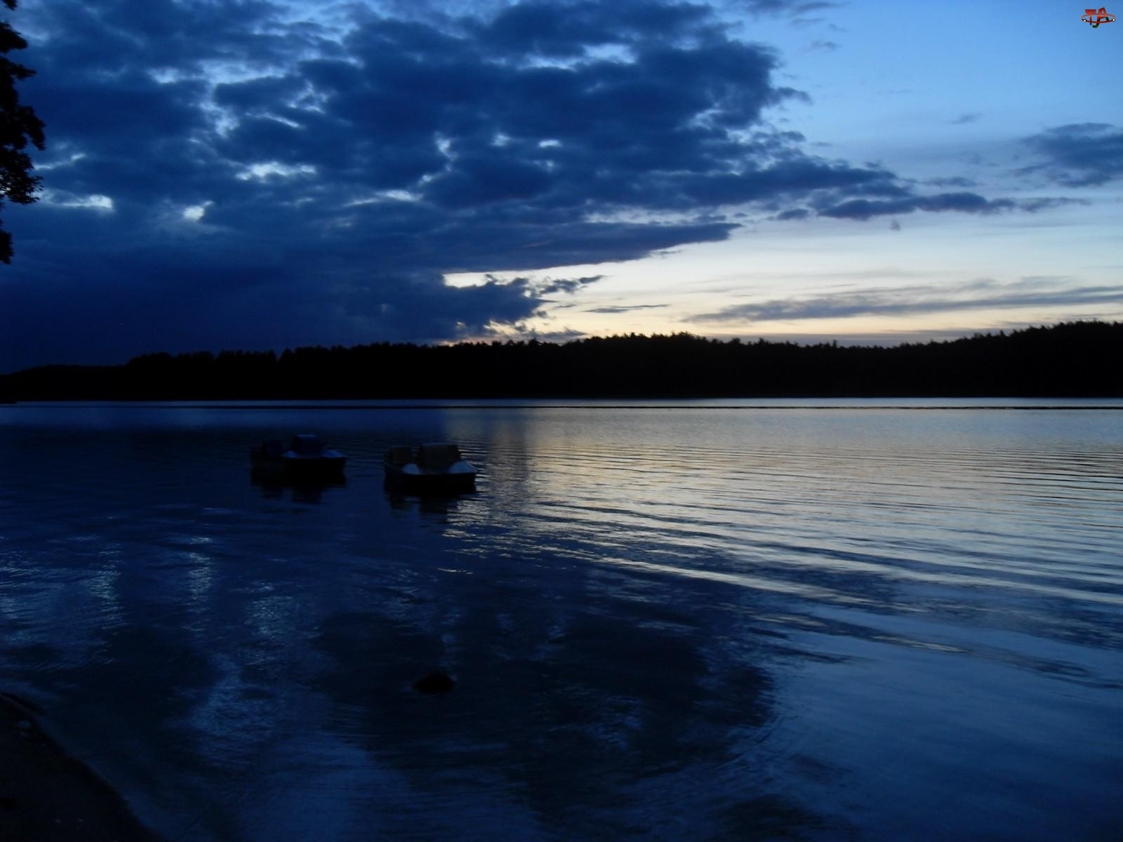Chmury, Las, Noc, Jezioro