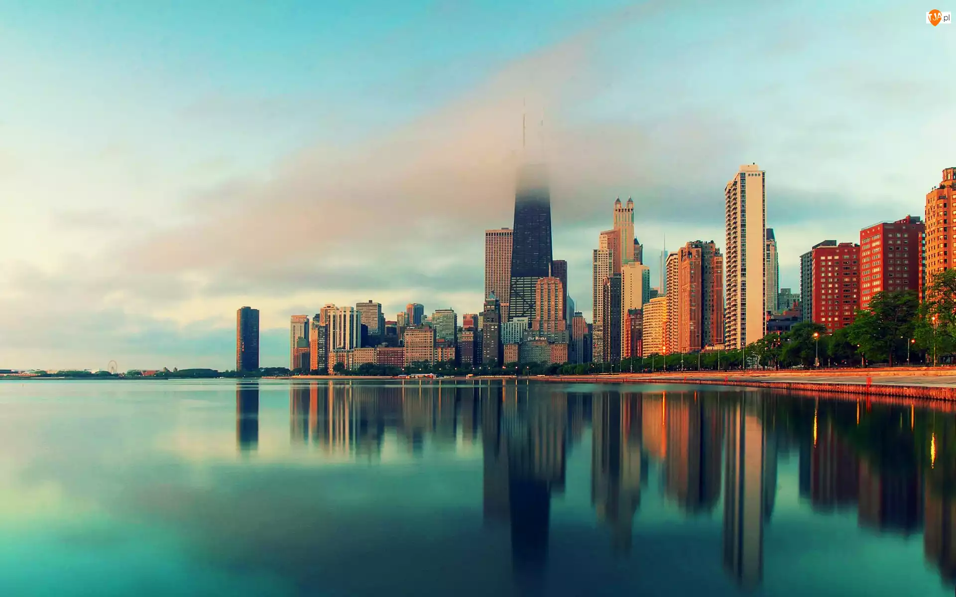 Jezioro, Budynki, Chicago, Miasta, Chmury, Panorama