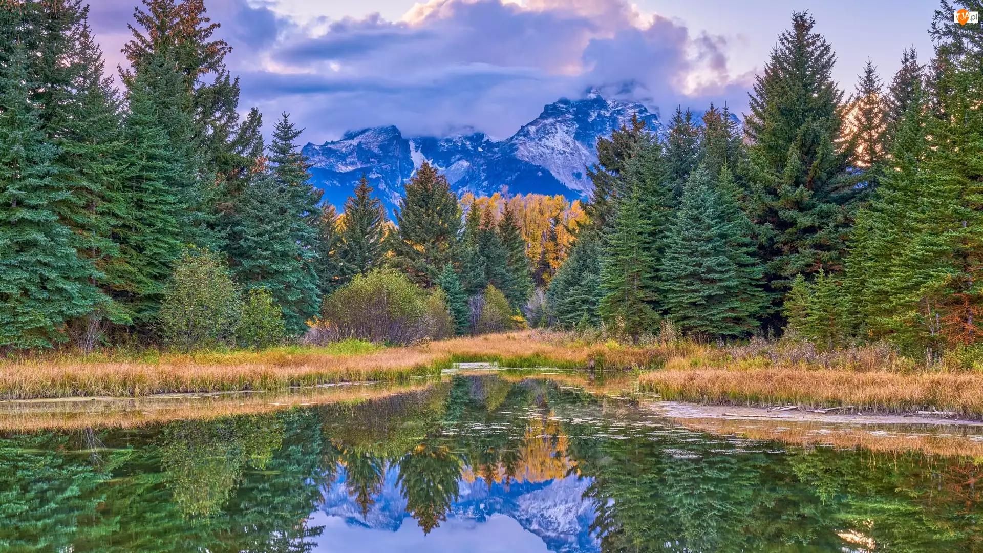 Chmury, Park Narodowy Grand Teton, Rzeka, Stan Wyoming, Góry Skaliste, Snake River, Stany Zjednoczone, Drzewa