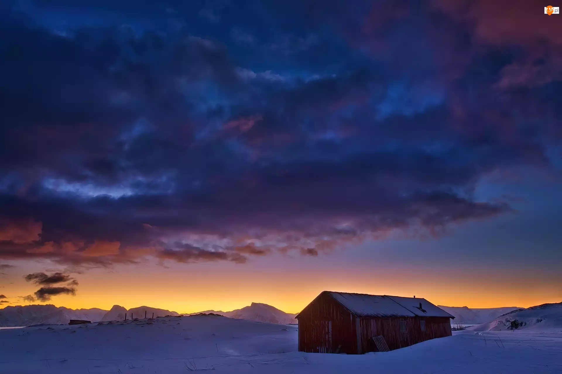 Chmury, Zachód, Szopa, Słońca, Śnieg