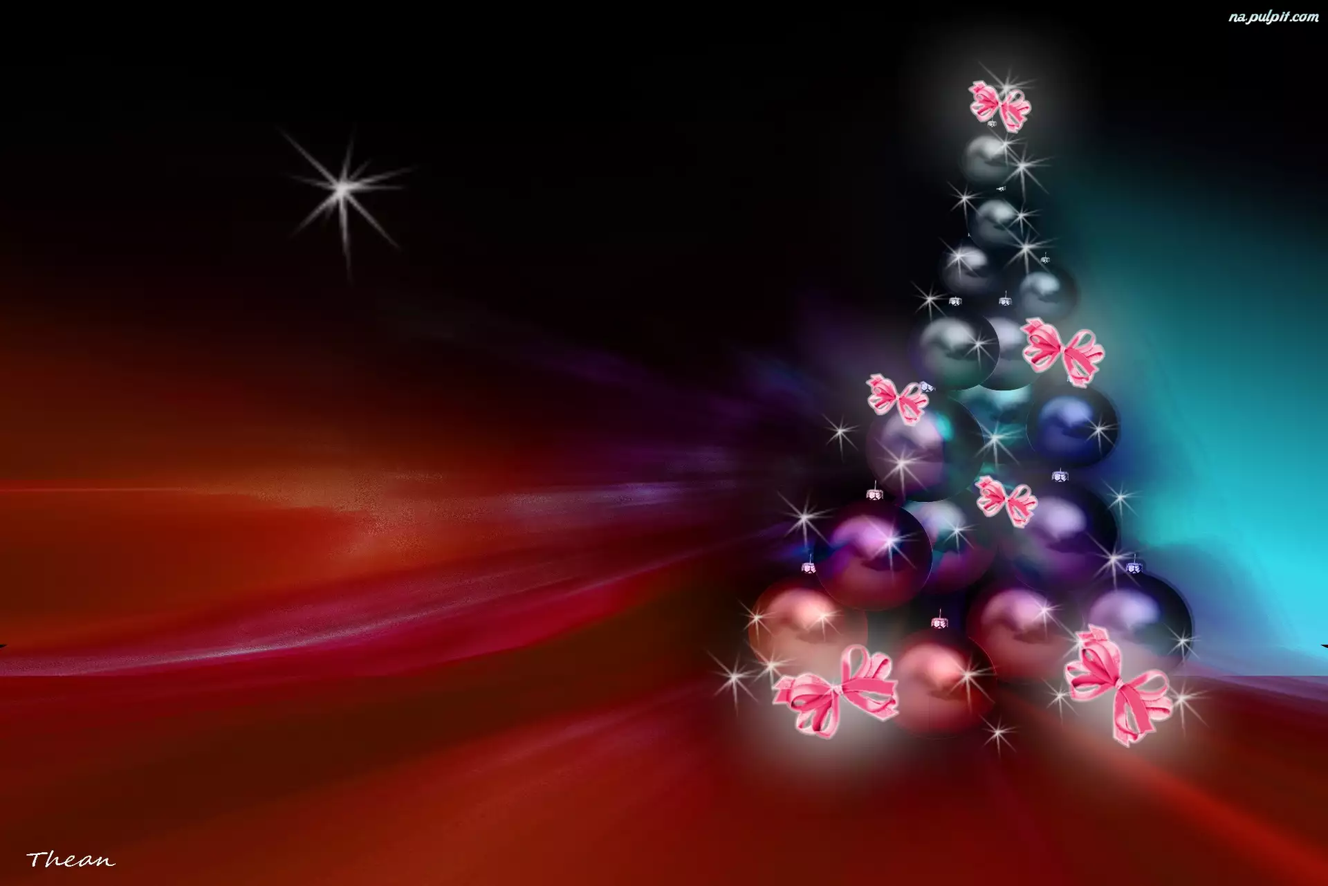 Choinka, Gwiazdki, Kokardki, Bombki