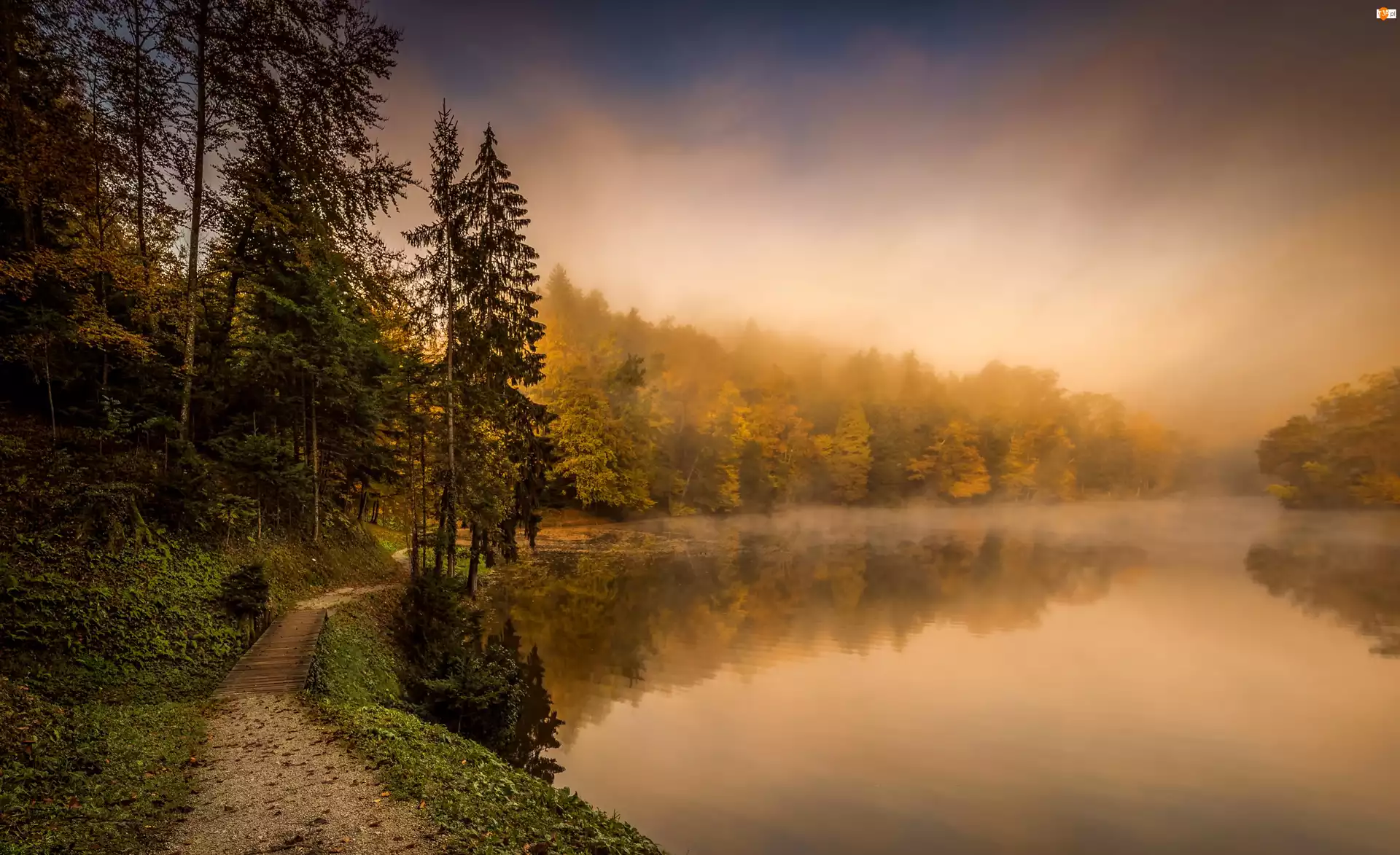 Chorwacja, Mgła, Jezioro, Las