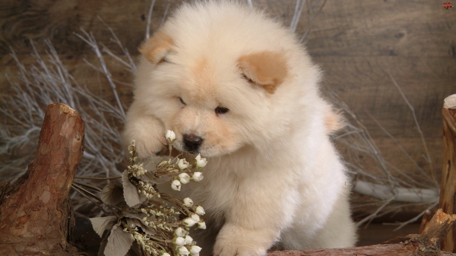 Chow, Mały, Szczeniaczek, Biały, Chow