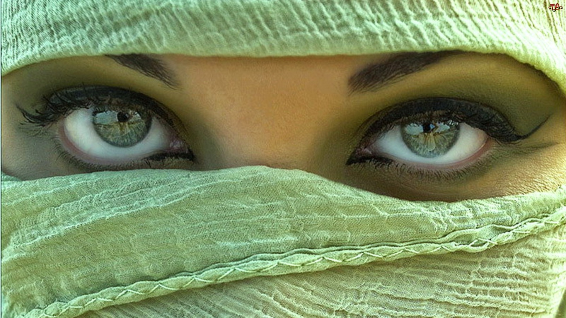 Oczu, Chusta, Makijaż, Kobieta, Zielona