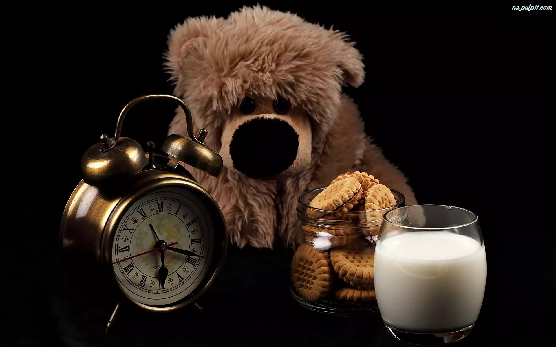 Ciasteczka, Misiu, Budzik, Zabawka, Mleko