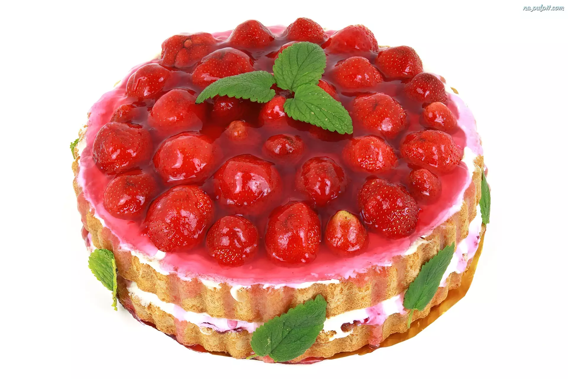 Ciasto, Mięta, Truskawki, Galaretka