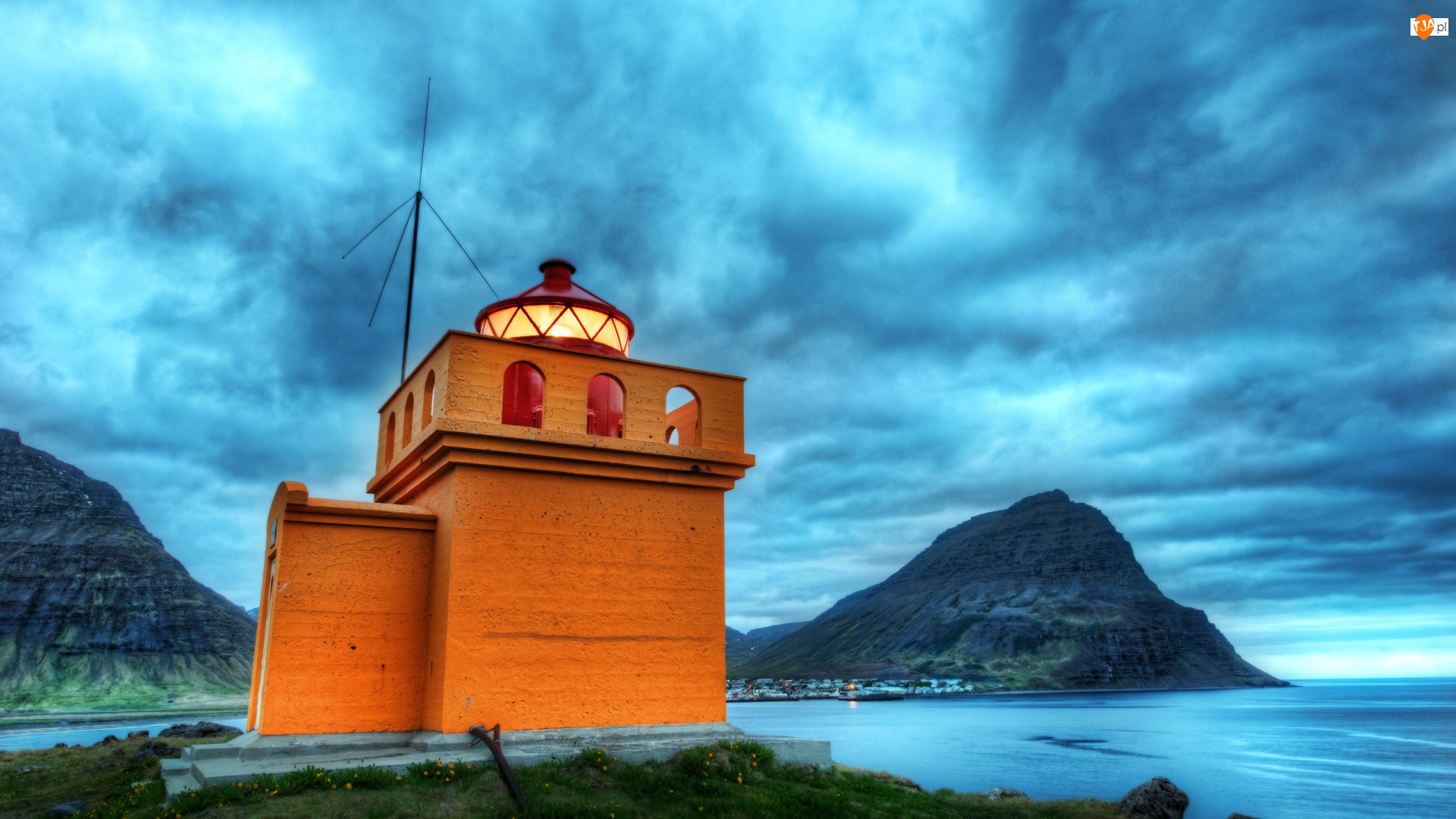 Ciemne, Góry, Morska, Latarnia, Chmury, Łąka, Morze