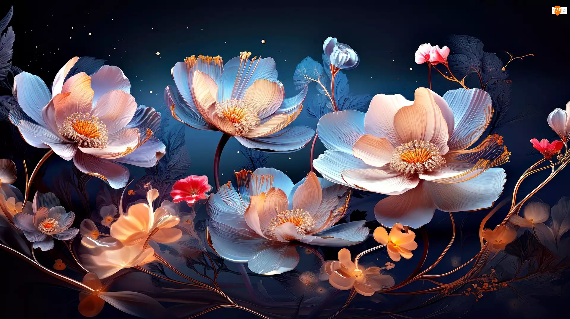 Ciemne, Grafika, Kwiaty, Rozwinięte, Tło