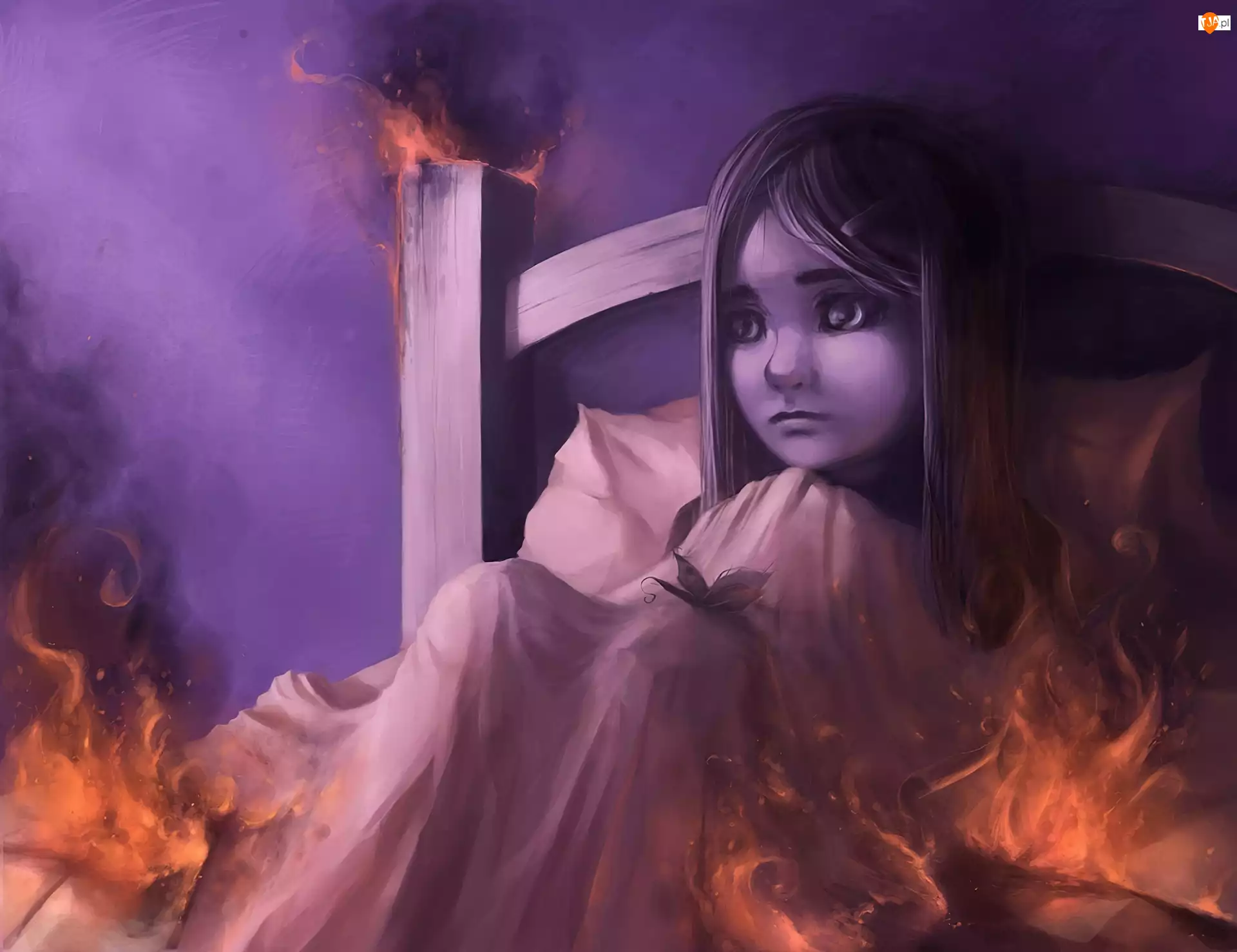 Łóżko, Cyril Rolando, Dziewczynka, Ogień