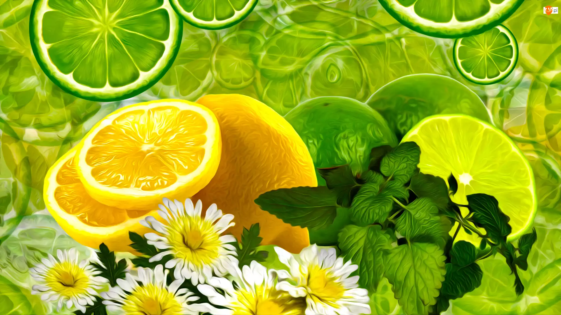 Mięta, Grafika, Limonka, Cytryna, Kwiaty