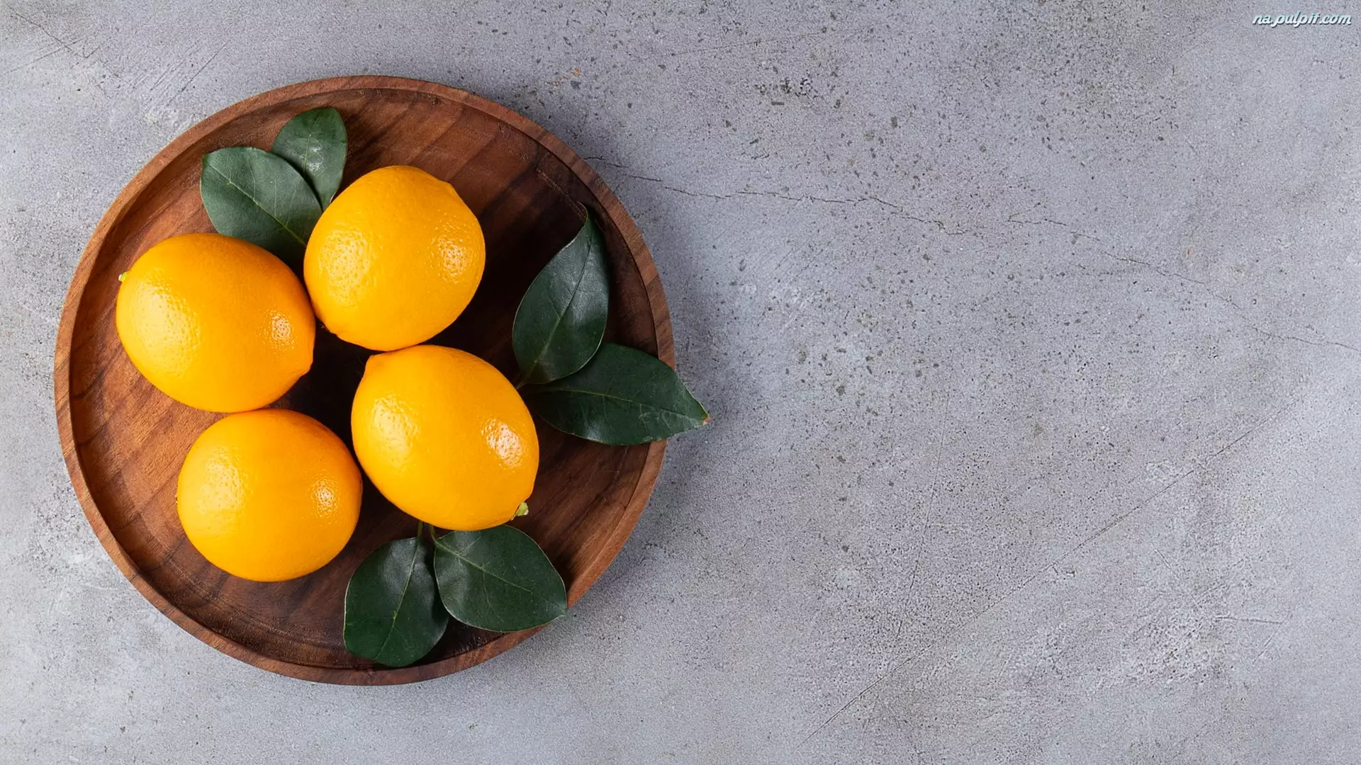 Drewniana, Taca, Liście, Cytryny, Okrągła