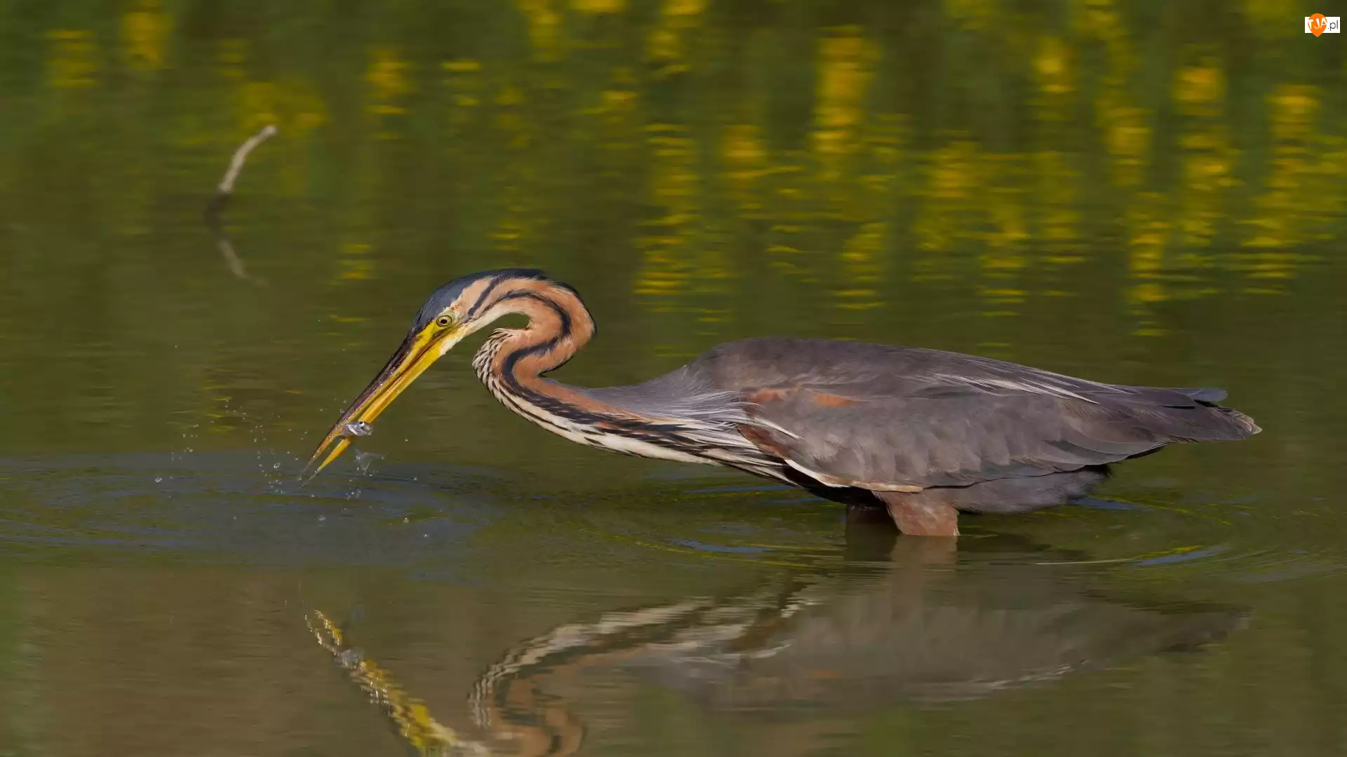 Czapla, Jezioro, Purpurowa, Żerowanie