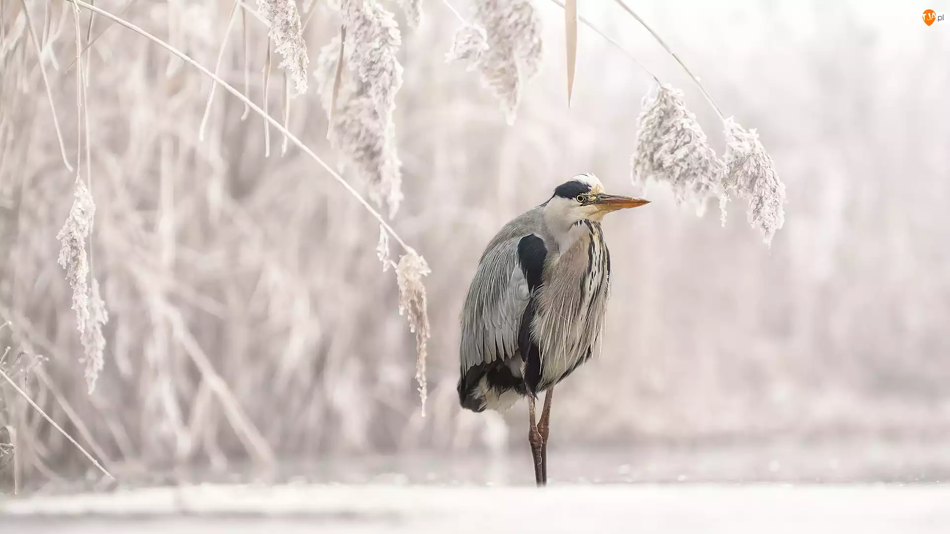 Trawy, Ptak, Czapla, Oszronione