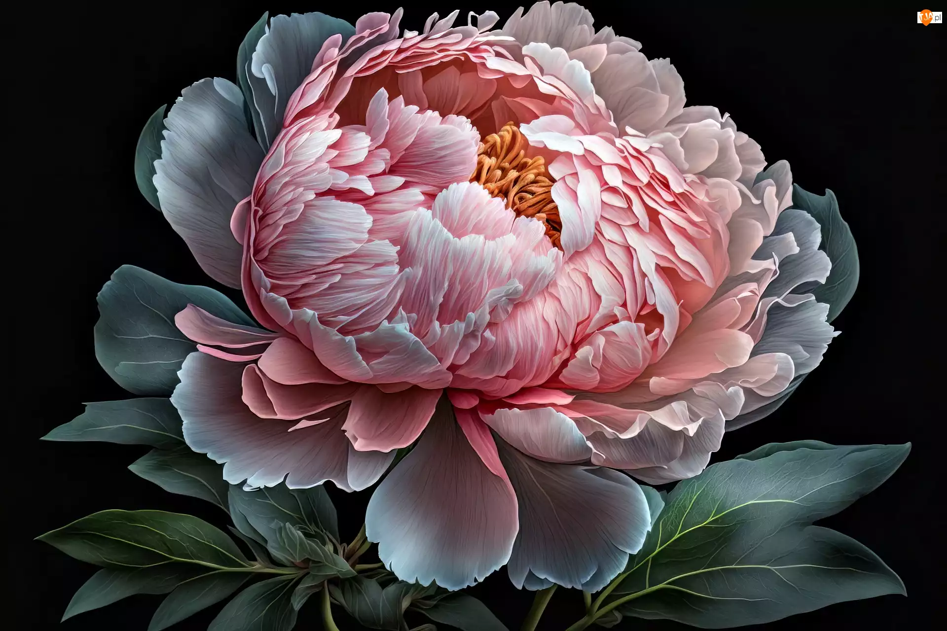 Czarne, Grafika, Kwiat, Piwonia, Tło