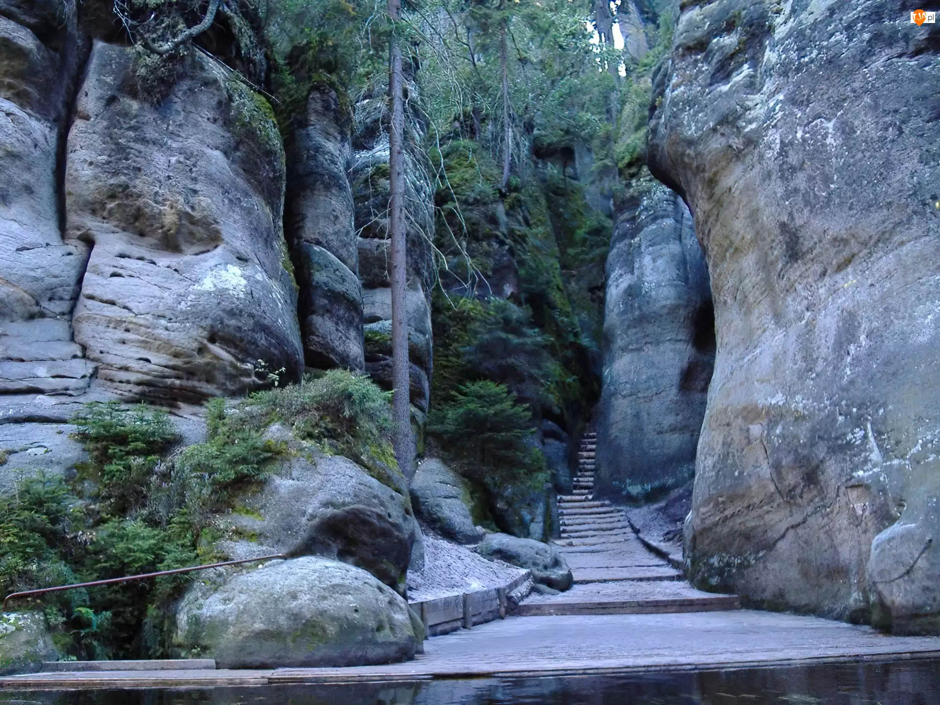 Czechy, Skały, Drzewa, Schodki, Adrspach