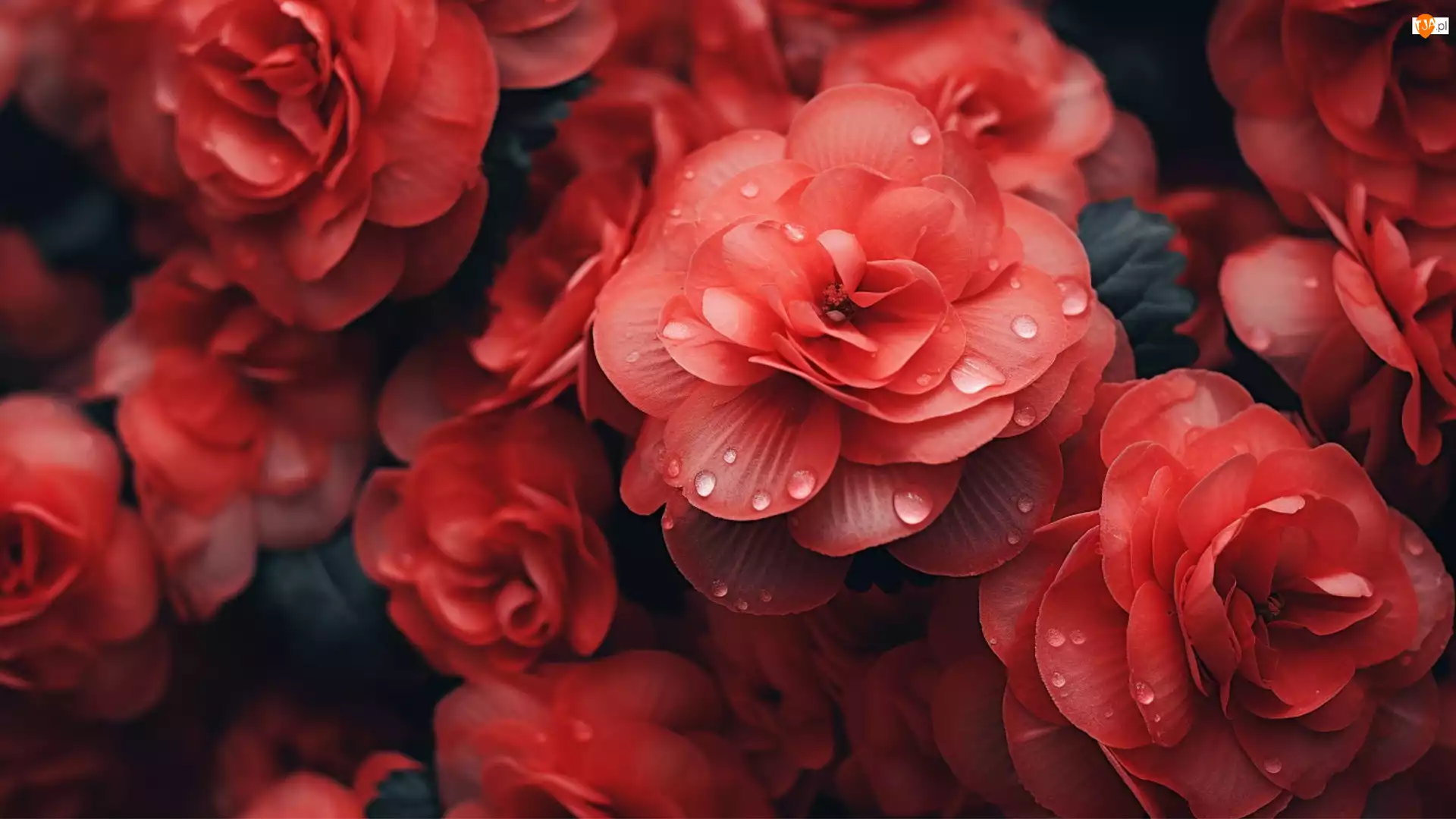 Krople, Kwiaty, Begonie, Czerwone