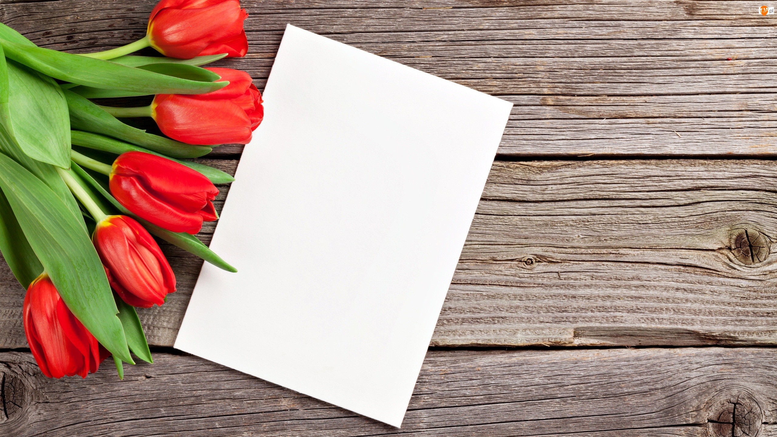Czerwone tulipany i biała kartka