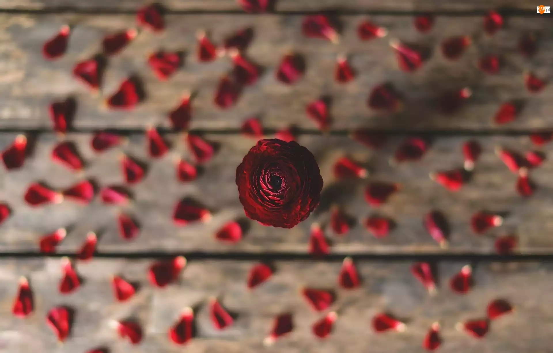 Kwiat, Czerwony, Deski, Rozmycie, Jaskier azjatycki, Płatki