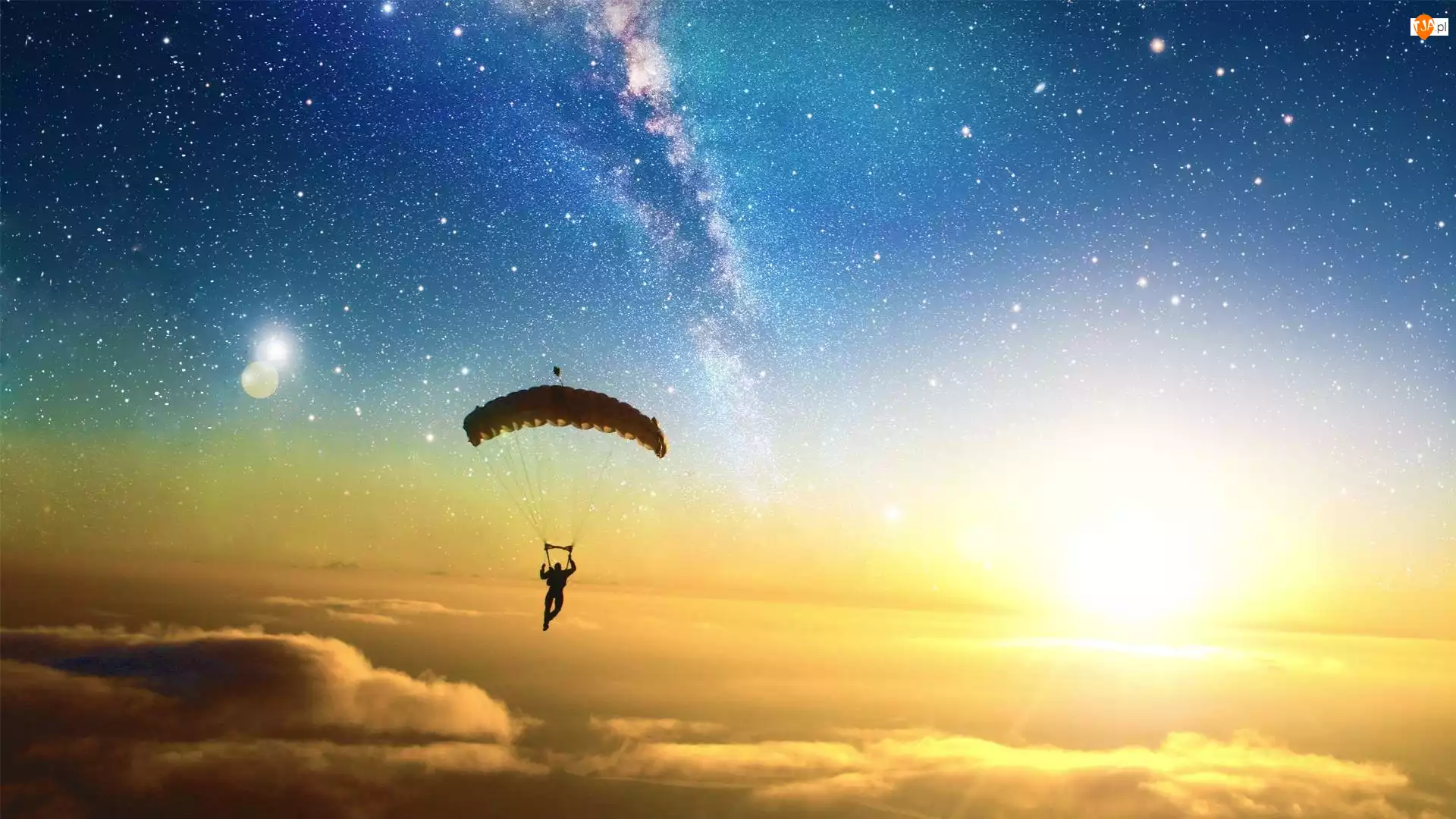 Człowiek, Gwiazdy, Spadochron, Niebo