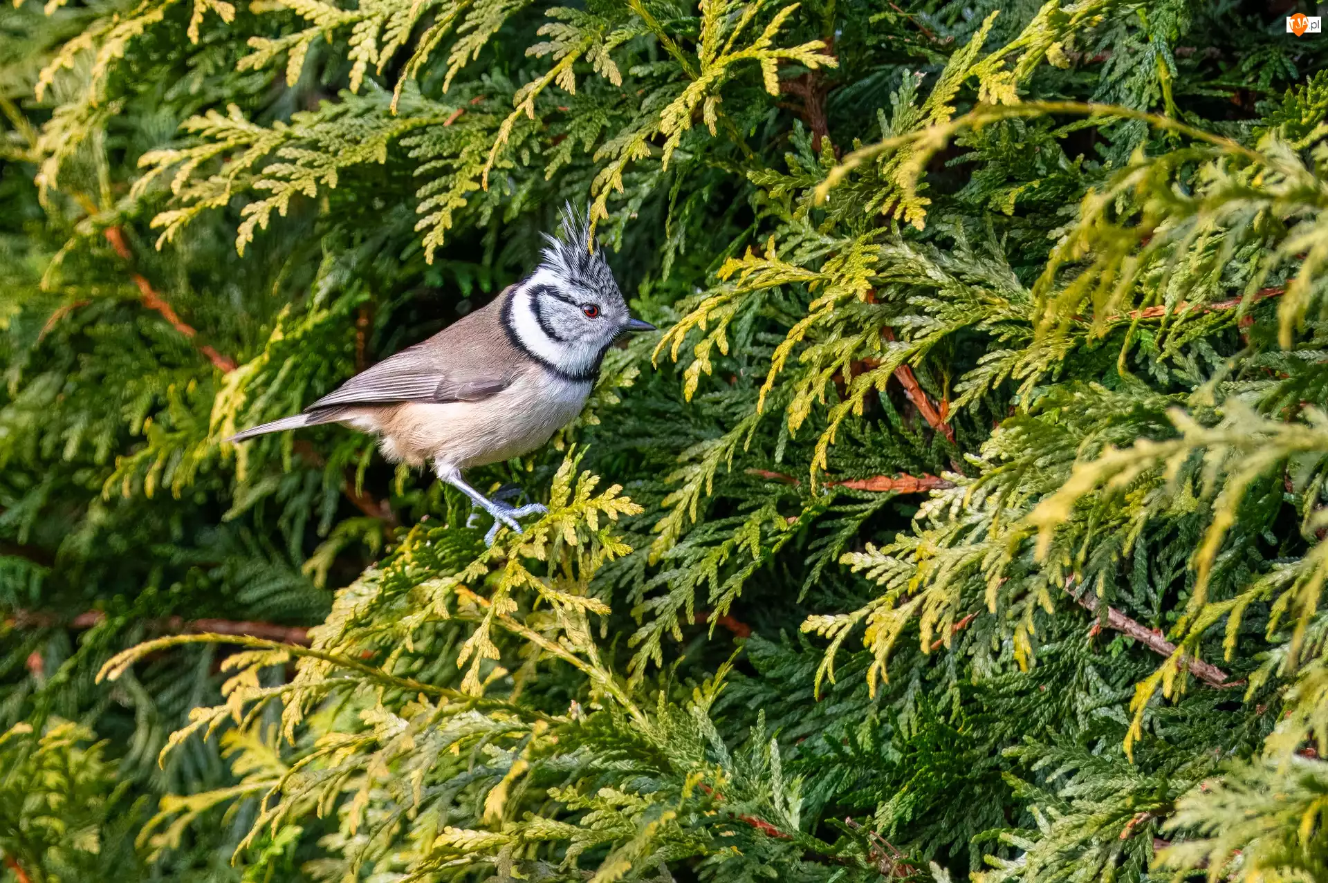 Czubatka Europejska, Tuja, Sikora, Ptak, Gałązki