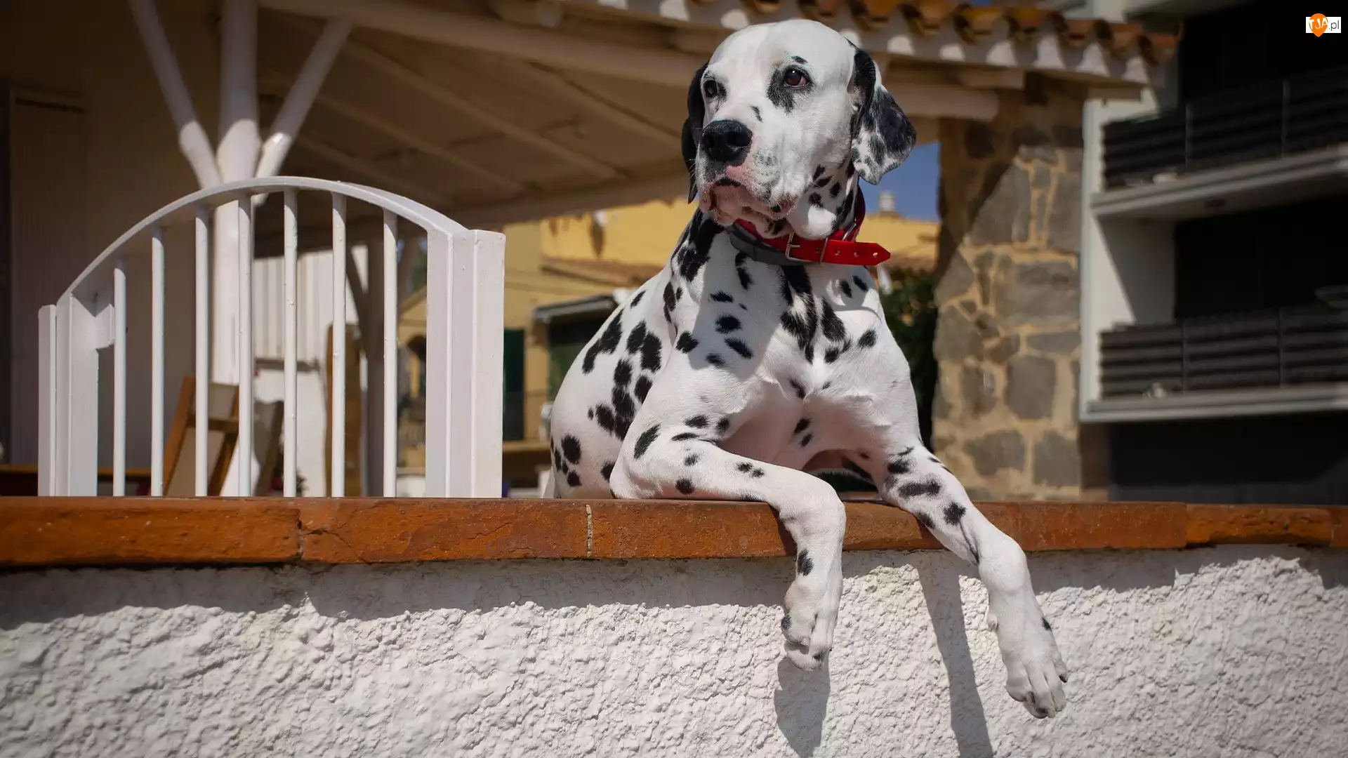 Dalmatyńczyk leżący murku