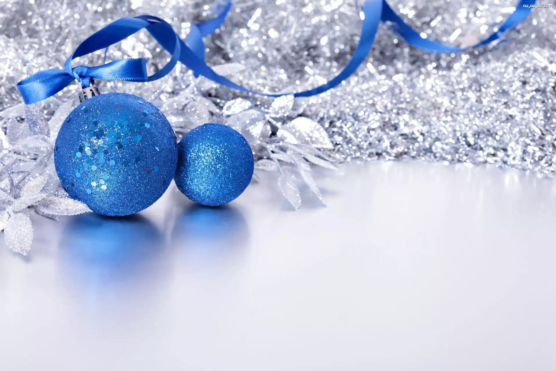 Dekoracja, Niebieskie, Bombki, Wstążka
