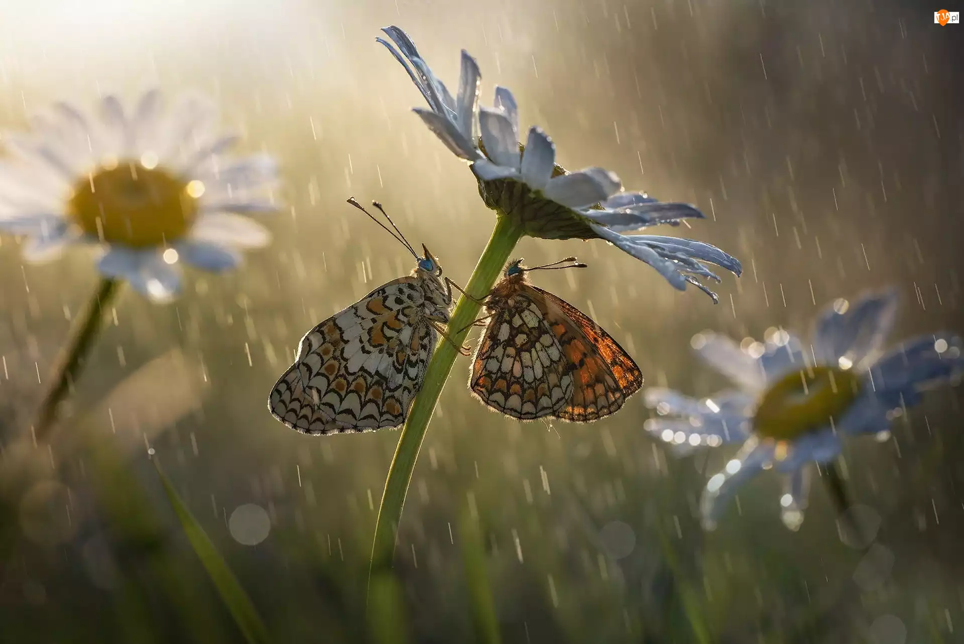 Deszcz, Motyle, Przeplatki, Margerytki