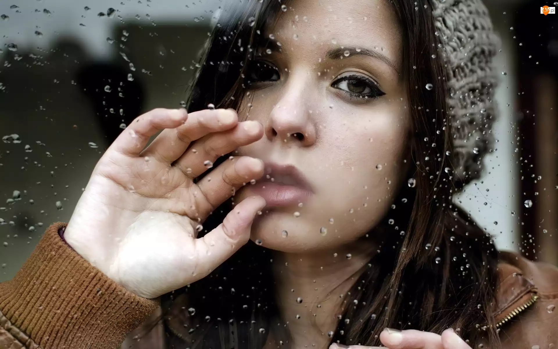 Szyba, Deszczu, Kobieta, Smutna, Krople