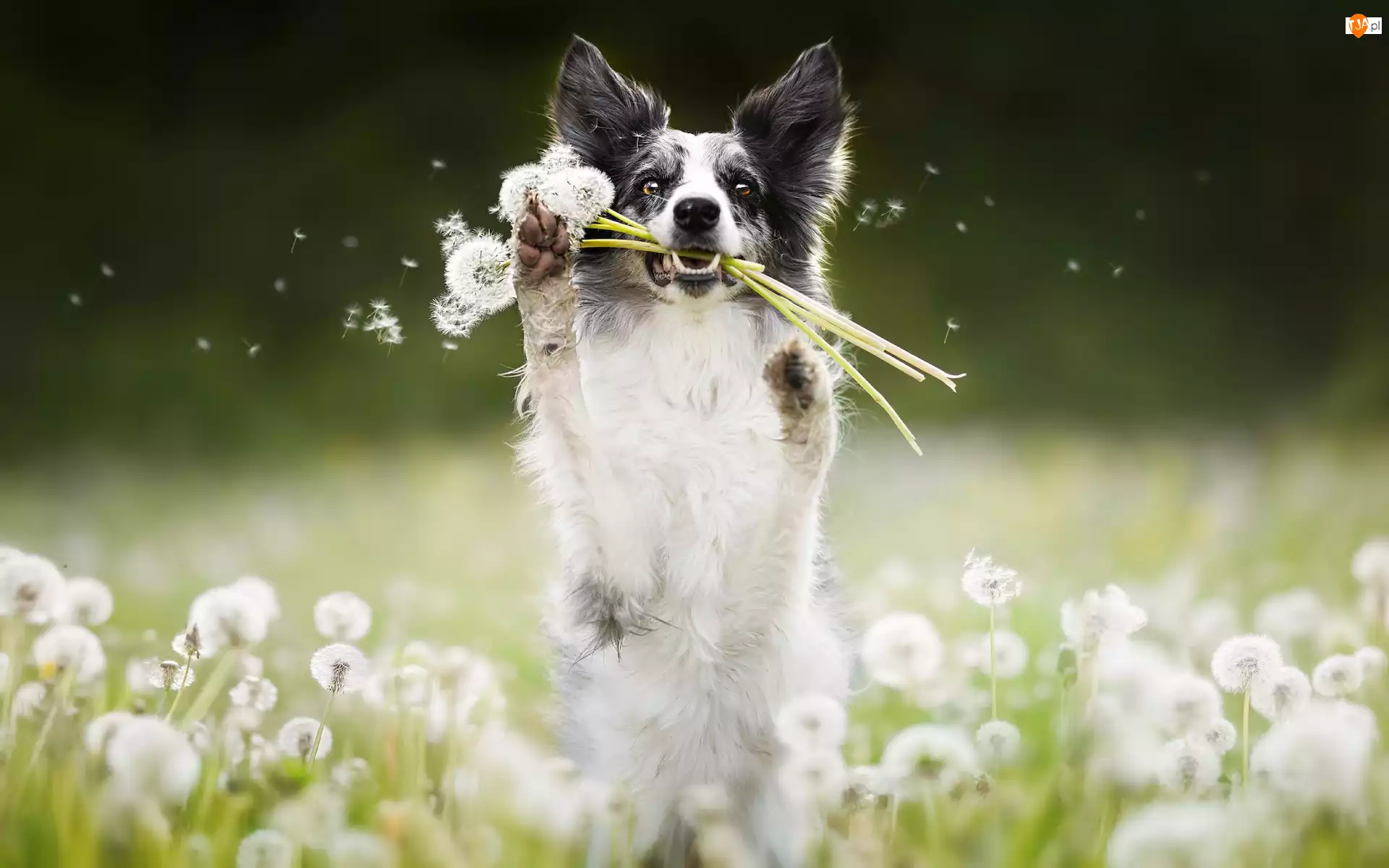 Dmuchawce, Pies, Border collie, Łąka