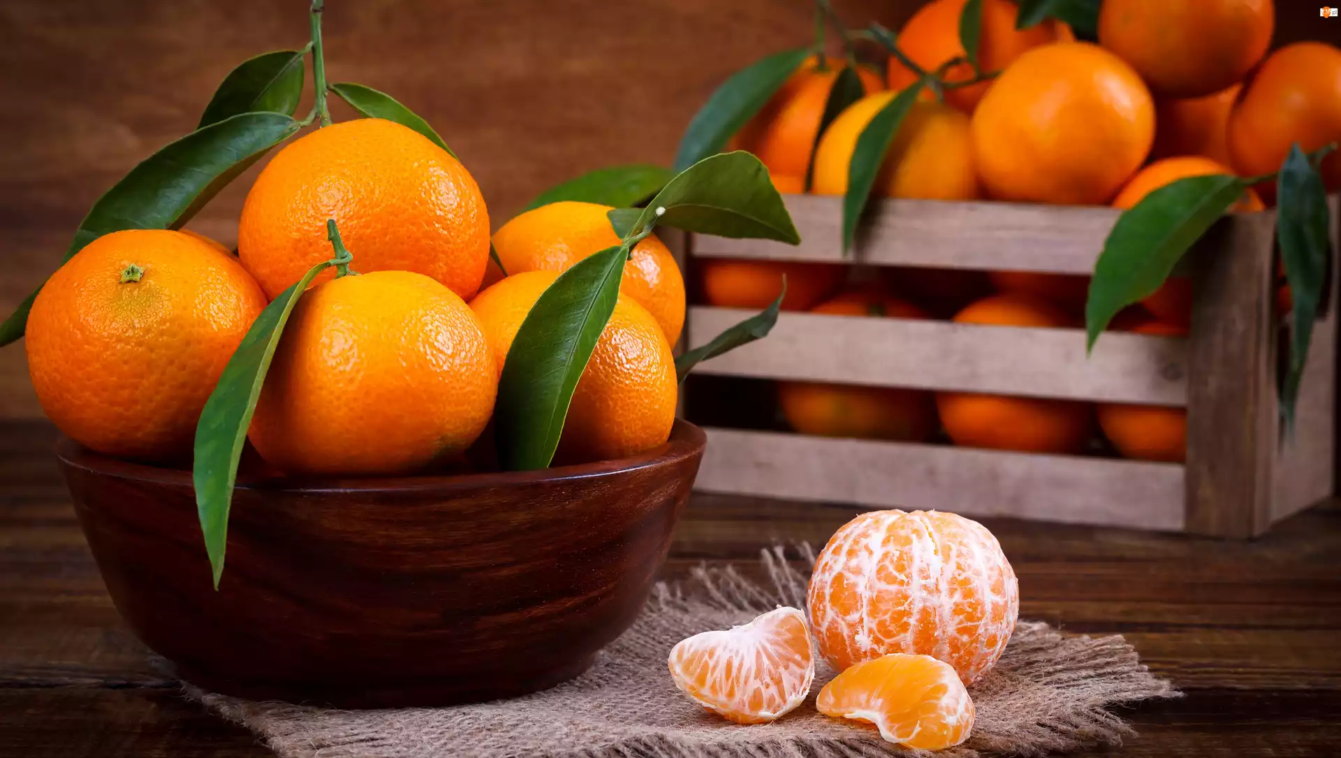 Mandarynki, Skrzynka, Listki, Miska