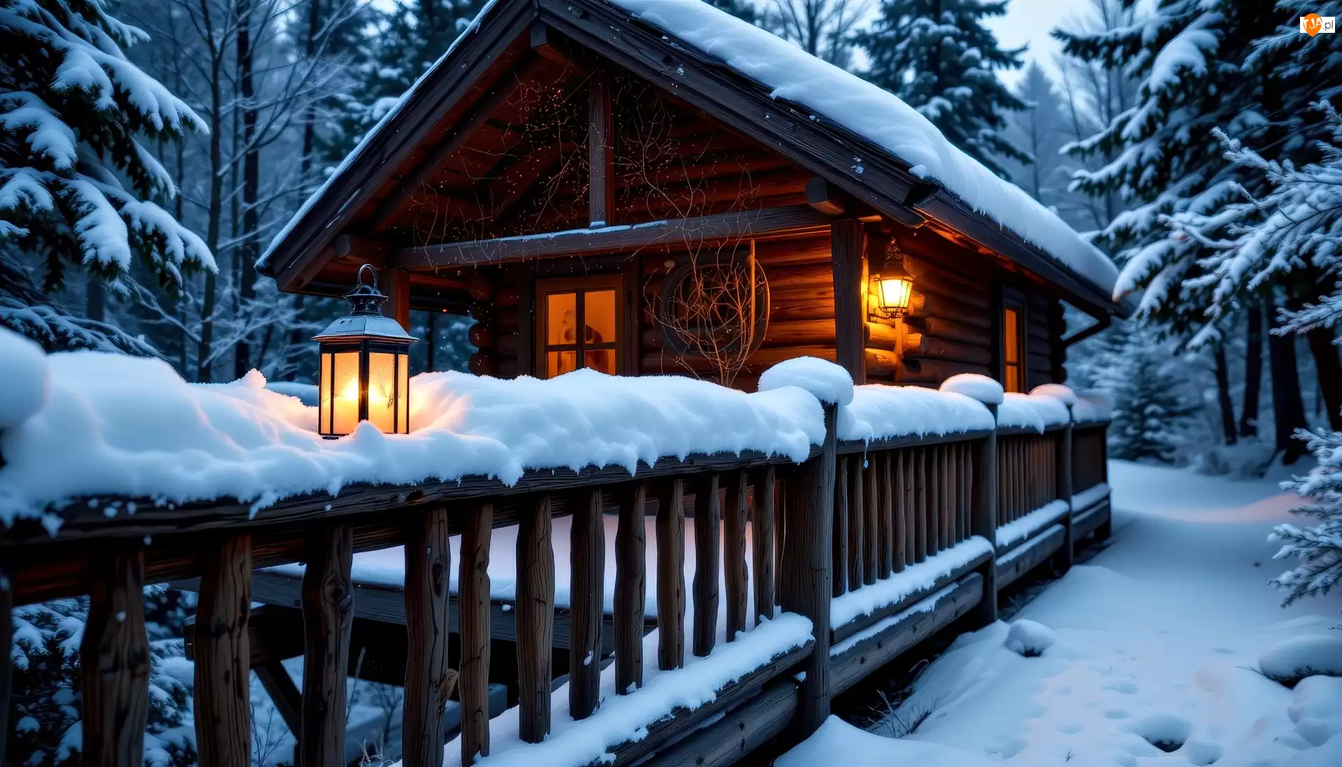 Następna >>Zima, Las, Grafika AI, Boże Narodzenie, Dom, Drzewa, Ośnie
