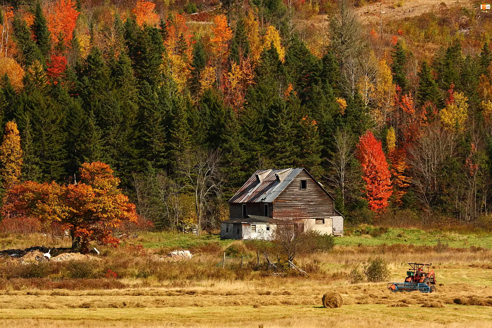 Dom, Kosiarka, Las, Jesień, Góra, Łąka