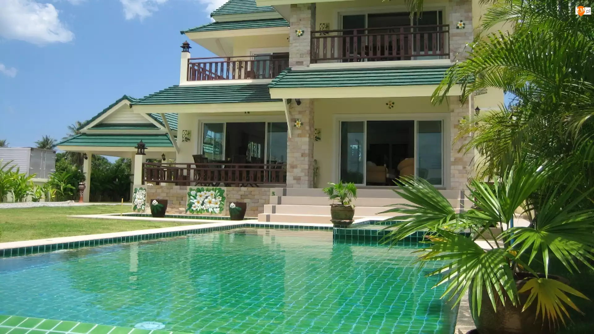 Dom, Palmy, Z, Basenem