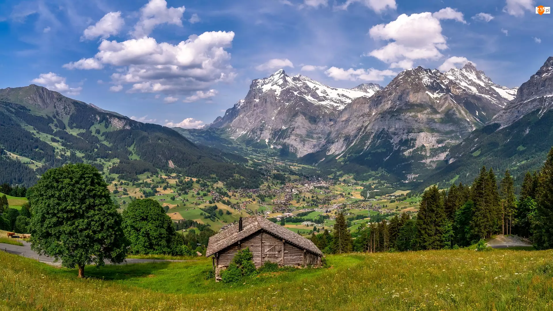 Góry, Alpy, Szwajcaria, Lato, Grindelwald, Dolina, Dom