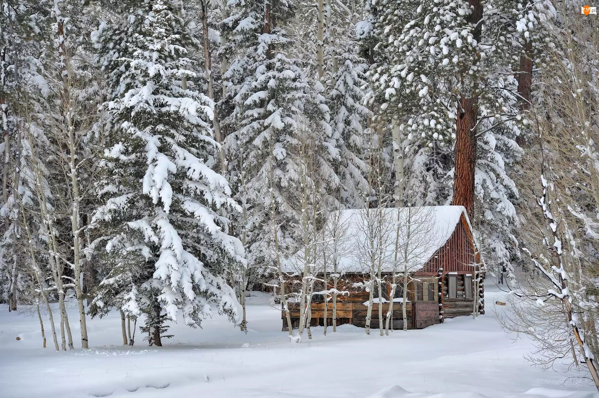 Drzewa, Las, Drewniany, Zima, Śnieg, Dom