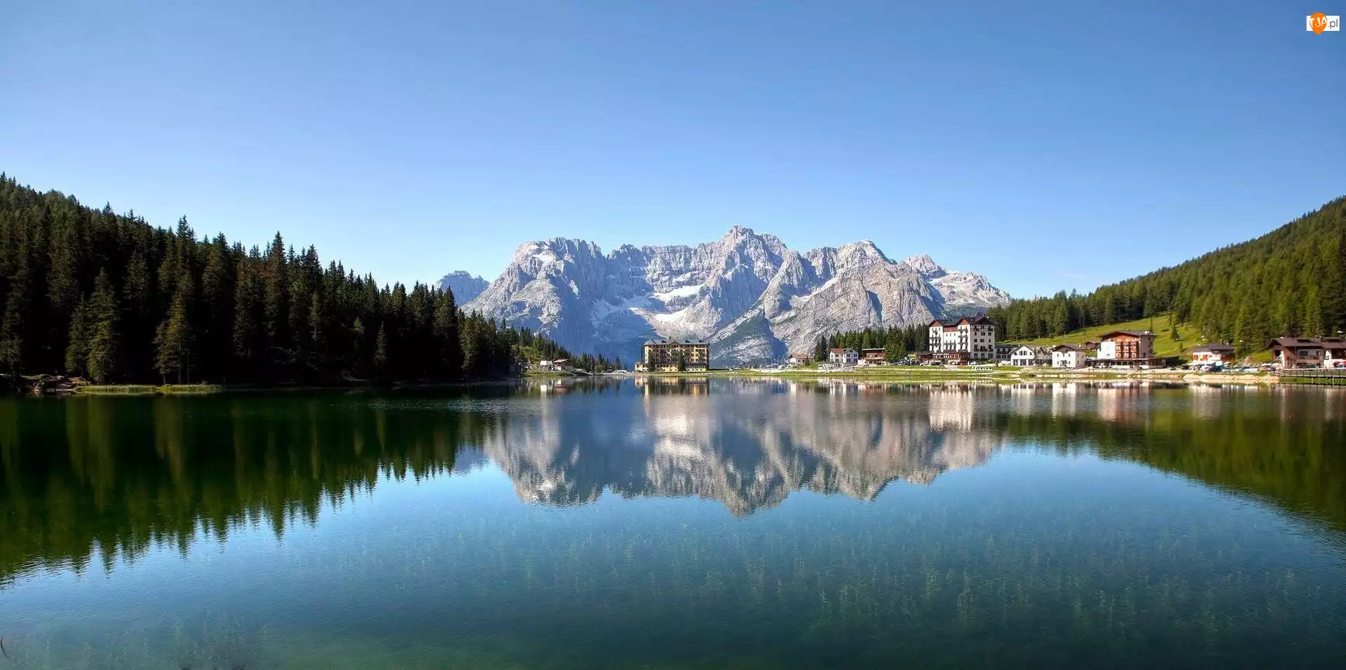 Domy, Jezioro, Lasy, Góry, Odbicie
