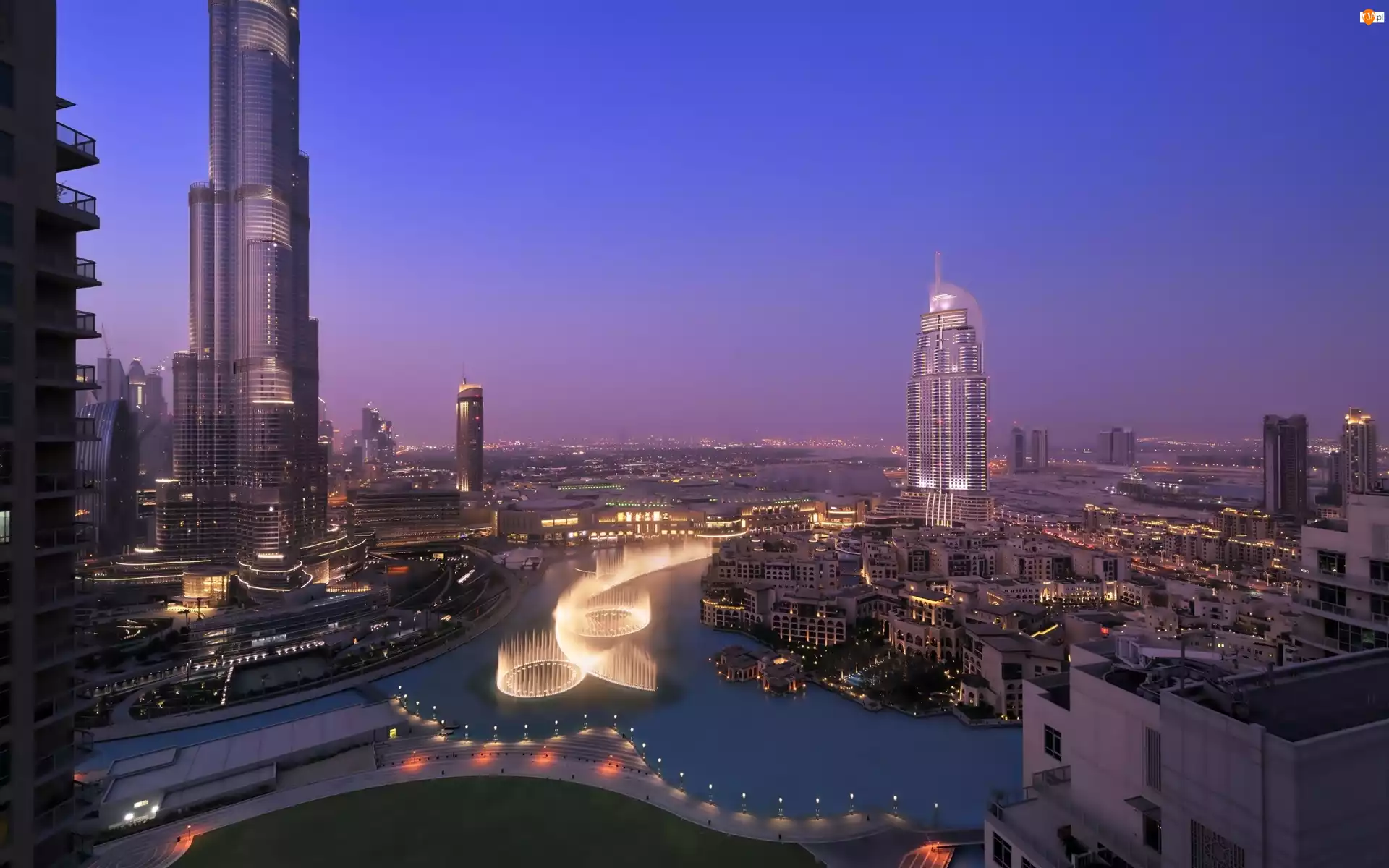 Drapacze Chmur, Dubaj, Fontanna, Noc
