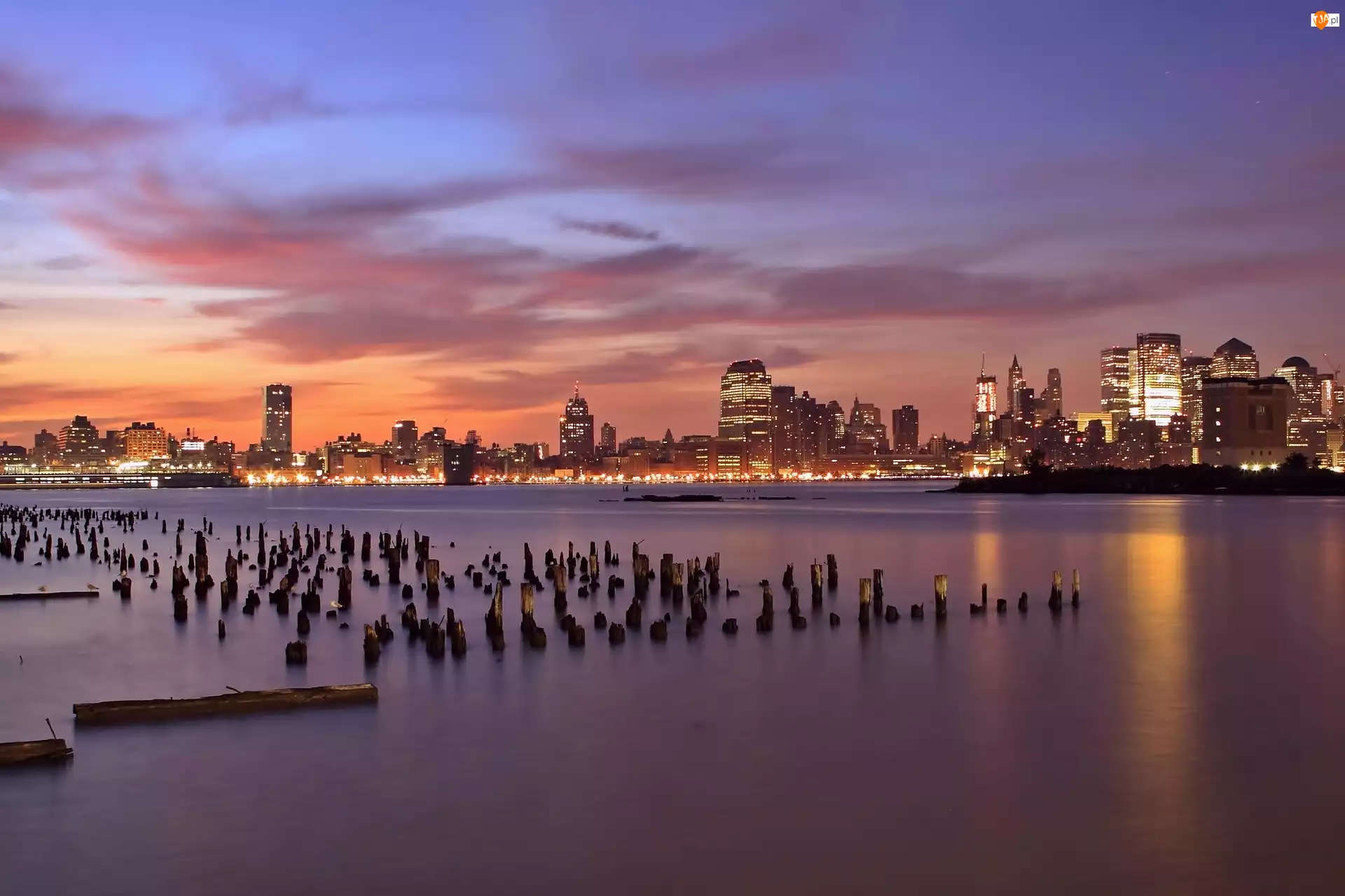 Drapacze Chmur, Zachód Słońca, New Jersey, Rzek