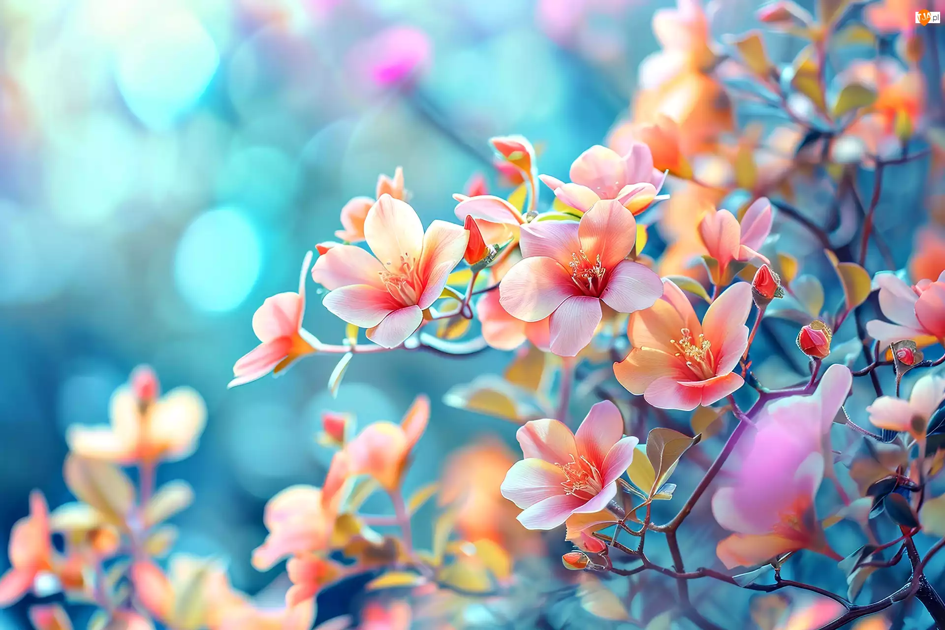 Drobne, Grafika, Gałązki, Kwitnące, Kwiaty