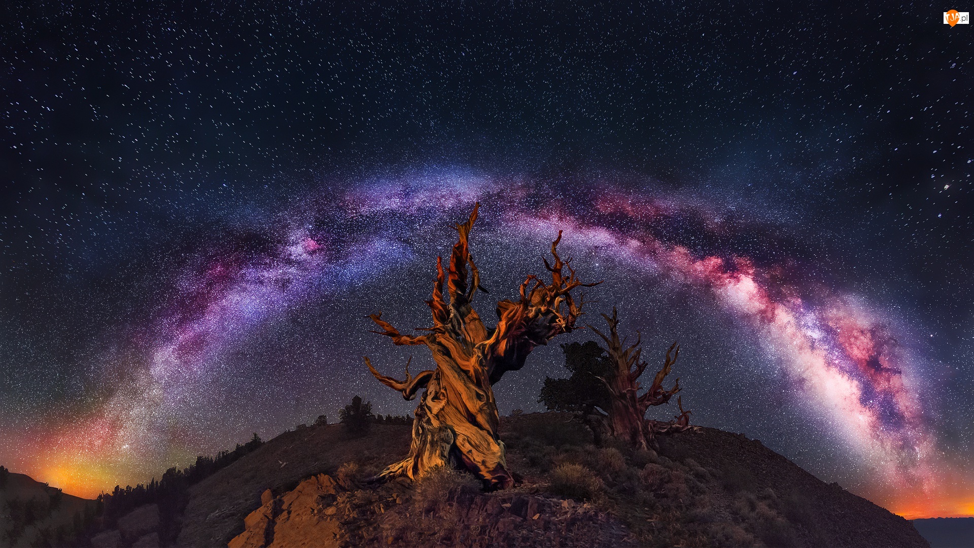 Droga Mleczna nad sosnami bristlecone w pobliżu B