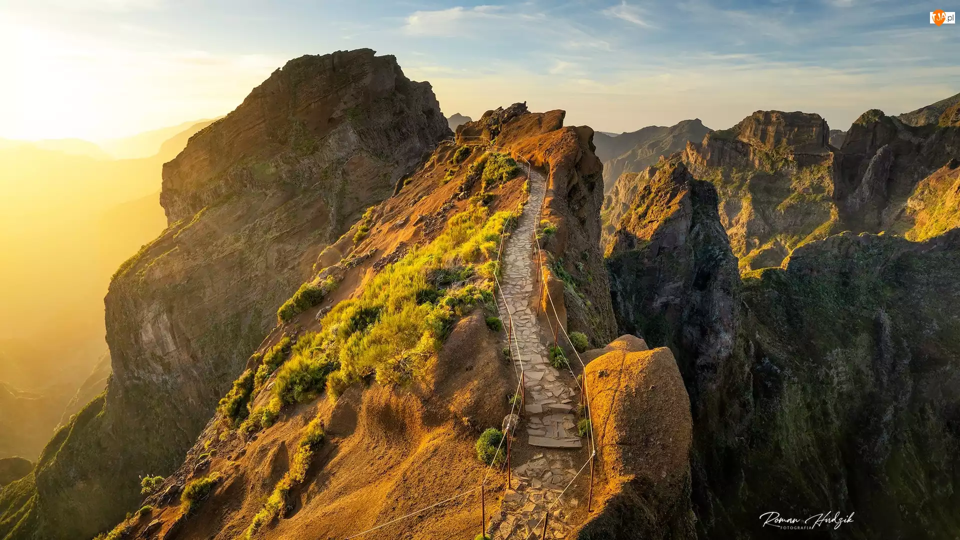 Droga, Portugalia, Pico Rija, Kamienna, Madera, Zachód słońca, Szlak wędrowny, Góry