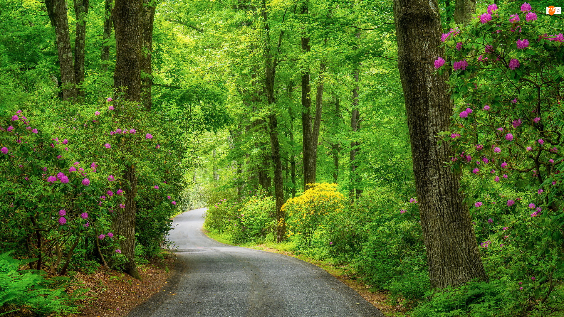 Droga, Wiosna, Paxton, Park miejski, Zielone, Massachusetts, Różaneczniki, Las, Moore State Park, Drzewa, Stany Zjednoczone