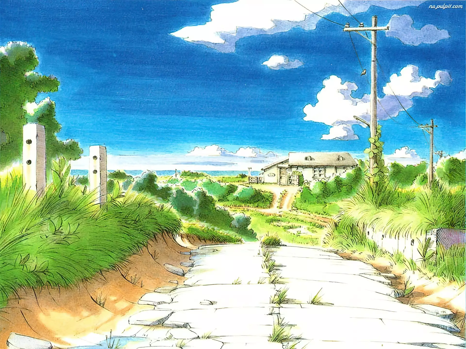 droga, Yokohama Kaidashi Kikou, słupy, dom, kablowe