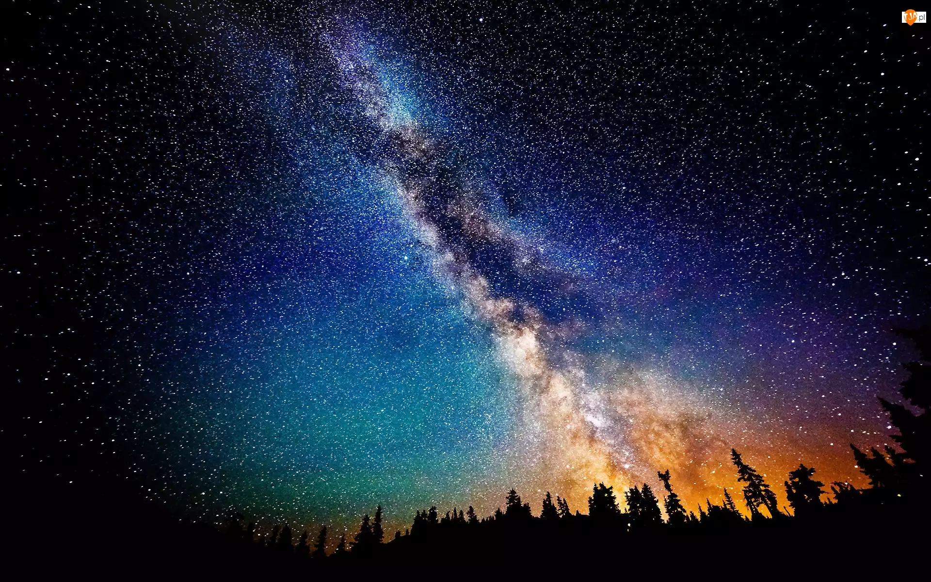Gwiazdy, Drzew, Droga, Mleczna, Cienie