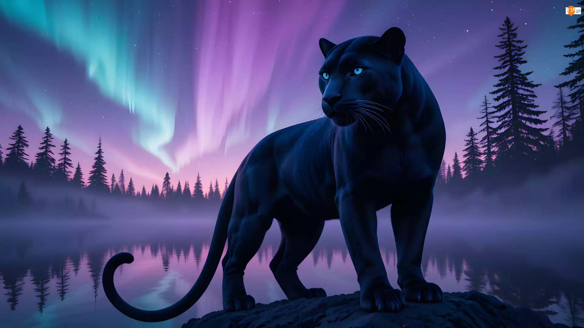 Drzewa, Czarny, Jaguar, Zorza polarna