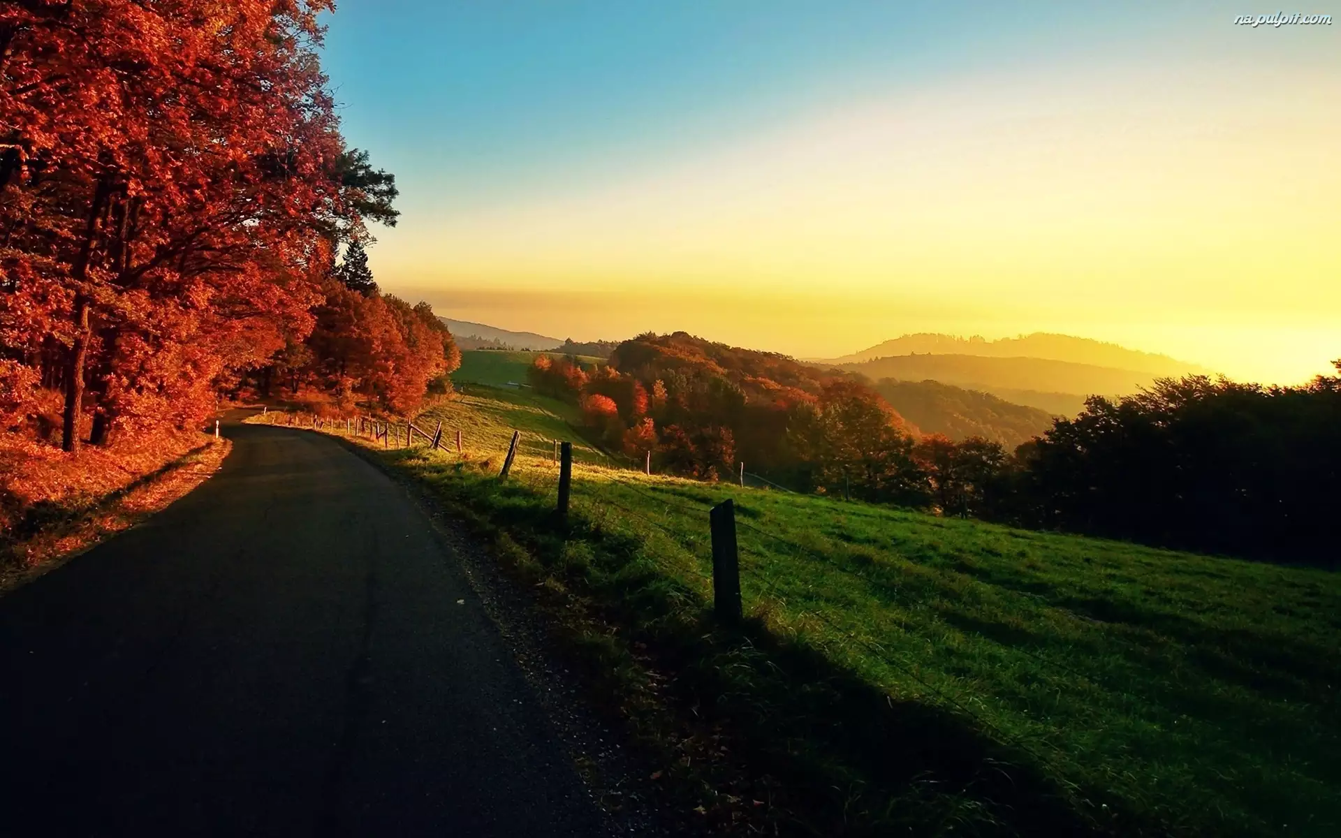 Drzewa, Droga, Drewniane, Wzgórza, Paliki