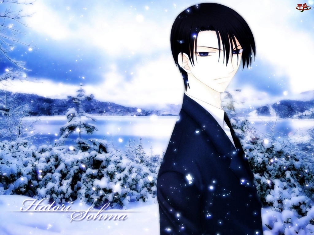 zima, drzewa, postać, Fruits Basket, śnieg